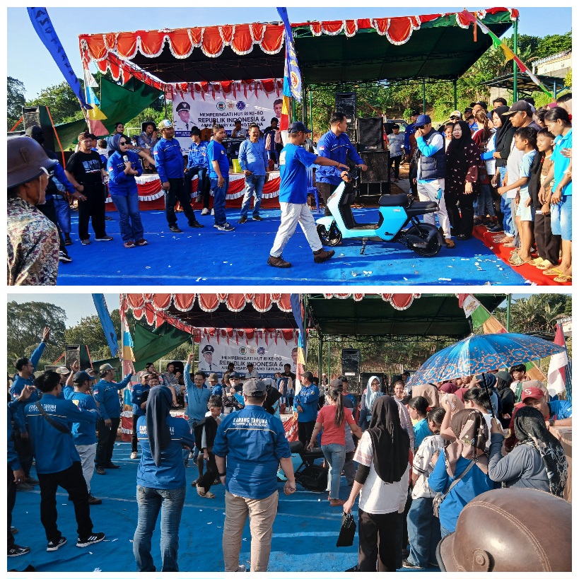 Selain hadiah utama, Asep Candra juga menambahkan 30 hadiah tambahan bagi pemenang kupon undian. Kehadiran beliau disambut antusias warga, sekaligus memberi semangat bagi masyarakat Desa Cilegong dalam memeriahkan peringatan kemerdekaan RI ke-80.